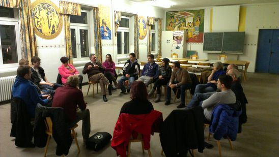 Bei der Führung durch die Leiterin der Gemeinschaftsunterkunft Frau Bolsinger und dem Leiter des Geschäftsbereiches Integration und Versorgung des Landratsamtes, Herrn Betz, bekamen die SPD-Mitglieder einen Einblick über die Lebensumstände der Asylsuchenden. Auf mehreren Etagen finden Familien, wie auch einzelne Frauen und Männer eine Wohnmöglichkeit, können sich in Gemeinschaftsküchen selbst versorgen und teilen sich die sanitären Anlagen. Sprachkurse und Freizeitaktivitäten, welche durch ehrenamtliche Mitarbeiter durchgeführt werden, ergänzen ein Bildungsangebot. Herr Betz berichtete, dass die Zahlen der Asylsuchenden deutschlandweit vorübergehend auf einem relativ niedrigen Niveau waren und erst seit 2007 ansteigen. Die Zahl der anerkannten Asylbewerber liege nur etwa bei 3%, viele Menschen kämen derzeit vor allem aus den Krisengebieten wie Afghanistan, dem Irak oder Syrien. Betz und Bolsinger bestätigten, dass sich seit der Demonstration im vergangenen Jahr vieles getan hätte und man auf die Forderungen eingegangen sei. Der Zeitplan für die Umsetzung werde eingehalten. Die Jusos betonten, dass die Arbeit in der Unterkunft aus ihrer Sicht eine wichtige am Menschen sei. Niemand verlasse sein Land freiwillig. Aufgrund von Krieg, Not und Elend seien sie dazu gezwungen. Deutschland käme als reiches Land eine Verantwortung zu, die es mit Blick auf andere Ausgaben leicht stemmen könne. Der Gesellschaft komme eine Aufgabe zu, den Menschen zu helfen und diese einzubinden. Ob über Vereine, Parteien oder andere Organisation, jeder könne einen Beitrag leisten. „Das Thema Asyl darf nicht einseitig an den Stammtischen geführt, sondern es muss offen und breit in der Gesellschaft akzeptiert werden. Deutschland profitiert von den vielen Kulturen, die zu uns kommen, es gibt keinen Grund sich vor etwas Neuem zu fürchten“, so Vorstandsmitglied Korbinian Holder.