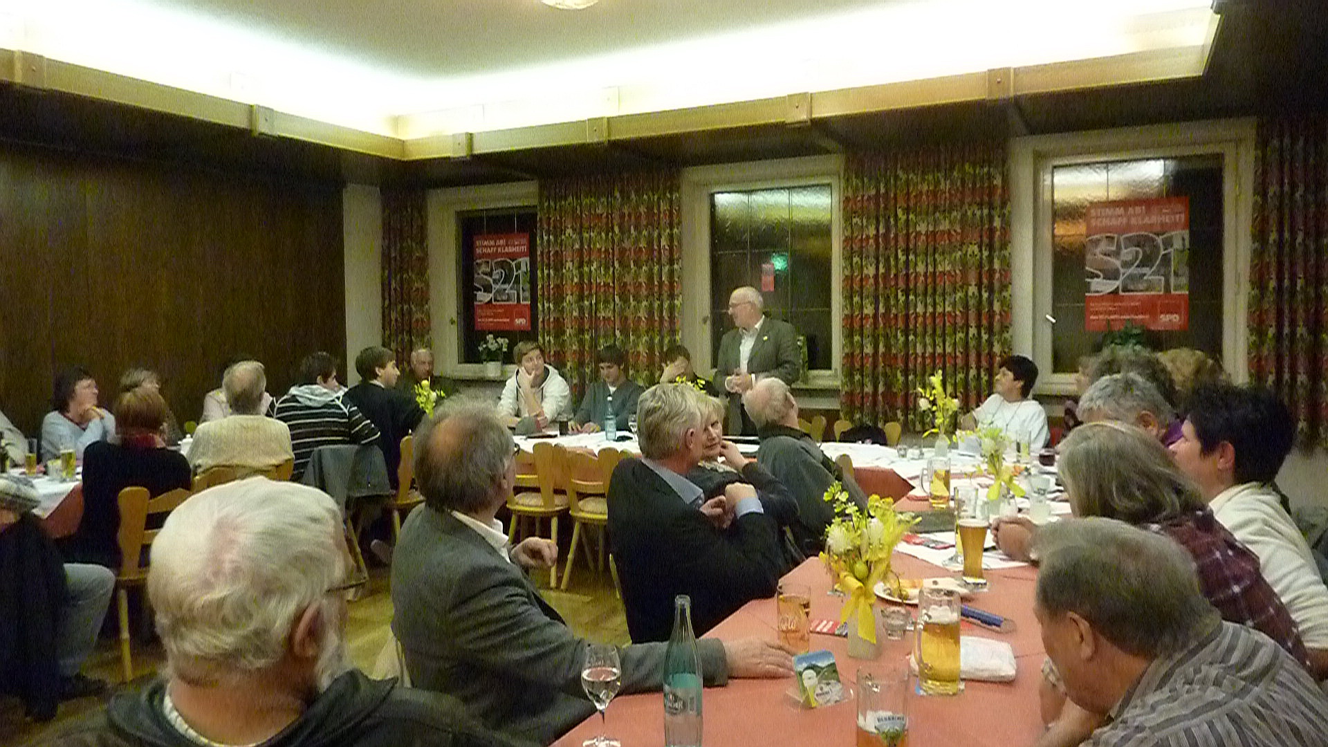 Bei der anschließenden Diskussion nutzen die zahlreichen Anwesenden die Gelegenheit mit Klaus Riedel und den Jusos über inhaltliche Fragen des Projekts und das Verhalten der SPD bei diesem Thema zu diskutieren. Riedel versteht nicht, wieso sich die Spitze der SPD Baden-Württemberg so schwer tue, das Projekt nach der Schlichtung und den Fakten neu zu bewerten und davon Abstand zu nehmen. Er versicherte, dass es ihm und den Mitstreitern gegen S21 in der SPD darum gehe ein aus seiner Sicht unsinniges Projekt zu stoppen. Das würde der Partei nicht schaden, sondern Respekt verschaffen. Dies faste auch die Statements der meisten Gäste an diesem Abend zusammen. Auf die Frage, wie sich die SPD denn nun verhalten würde, antwortete Jakob Unrath: „Es gibt einen Parteitagsbeschluss aus Offenburg. Dieser besagt, dass die SPD sich als Partei an keinem Bündnis pro oder contra finanziell beteiligt. Die SPD hat den Volksentscheid durchgesetzt. Der Souverän ist nun gefragt. Jedes Mitglied soll für sich entscheiden, ob es für oder gegen das Projekt ist und kann als Einzelner für seine Position werben.“ Für die Jusos Schwäbisch Gmünd bestätigen dies auch Joachim von Streit und Alexander Relea-Linder. Es gebe dort Befürworter wie Gegner, auch hätten einige ihre Meinung geändert. Man diskutiere über das Thema, aber lasse sich nicht in der übrigen Arbeit beeinträchtigen. Die Anwesenden waren sich einig, dass es wichtig sei, dass möglichst viele Bürgerinnen und Bürger am Volksentscheid teilnehmen und es notwendig sei dafür Werbung zu machen. Bei einer anschließenden Abstimmung votierte an diesem Abend eine deutlich klare Mehrheit der SPD Mitglieder mit einem „ja“ für das Ausstiegsgesetz und damit gegen Stuttgart21.