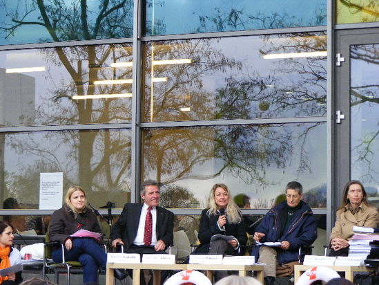 Bei dem Streik, der durch die Studentinnen und Studenten der PH kürzlich organisiert wurde, beteiligten sich auch die Gmünder Jusos. Sie verteilten Flyer und kamen mit den Zuhörern ins Gespräch. Mitglied Kathrin Unrath war als Vertreterin der GEW zusammen mit der SPD Bundestagskandidatin für den Wahlkreis Aalen/Heidenheim, Claudia Sünder, auf dem Podium. Etwa 2000 Studenten folgten dem Aufruf des Streikkomitees und legten den Betrieb der PH für den gesamten Tag lahm. Bei der Diskussion kamen die Positionen der Jusos, unter anderem die Studiengebühren endlich abzuschaffen, deutlich zum Ausdruck. Einen Bericht zum Streik findet ihr auch unter www.regio-tv.de. Der Bericht ist vom 19.11.2008 – Studenten streiken.