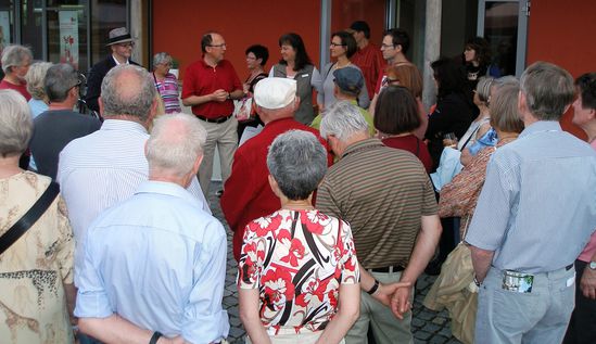 Bezirksbeiratsvorsitzender Konrad von Streit und Regionalrat Jakob Unrath begrüßten die Teilnehmer und hoben die Bedeutung der Gartenschau für die Entwicklung der Stadt Schwäbisch Gmünd und die gesamte Region hervor. Viel Geld werde im nördlichen Stadtteil investiert, wo sich ein Großteil des Geländes der zukünftigen Landesgartenschau befindet. Das zentrale Gelände befände sich zwischen Bahnhof und Josefsbach, das Gebiet Wetzgau nehme aber mit den Obstbäumen und Blumenanlagen ein geräumiges Gebiet ein, welches auch nach 2014 zur Naherholung einlade, so von Streit. Schwierig sei, so meinten viele aus der Besuchergruppe, wie die Besucherströme das Gartenschaugelände vom Gmünder Zeiselberg bis nach Wetzgau und wieder zurück durchqueren sollen. Auch der Höhenunterschied vom Remstal zur Anhöhe sei problematisch.