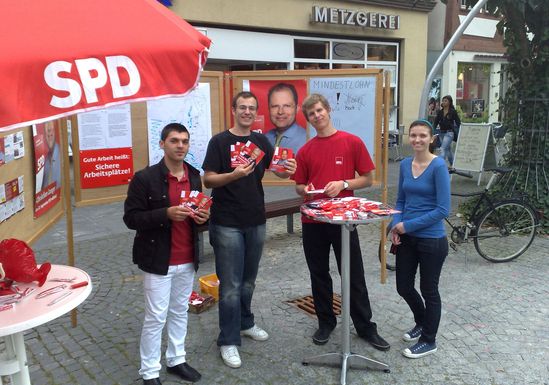 Rund zwei Wochen vor der Wahl gehen auch die Jusos Schwäbisch Gmünd in die heiße Phase des Wahlkamps. Mit einem Stand zum Thema Mindestlohn informierten sie zahlreiche Wählerinnen und Wähler über die Situation der Lohnuntergrenzen in Europa.