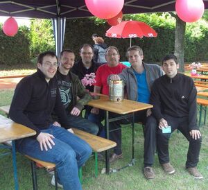 Die Jusos Schwäbisch Gmünd waren erfolgreich beim diesjährigen Boule-Turnier des Ortsvereins Herlikofen/Hussenofen. Preis: ein 5 Liter Bierfass, welches bei einem geplanten Grillfest zum Einsatz kommen soll. Das bild zeigt die beiden Mannschaften mit dem Ortsvereinsvorsitzenden von Herlikofen/Hussenhofen Joachim Denke.